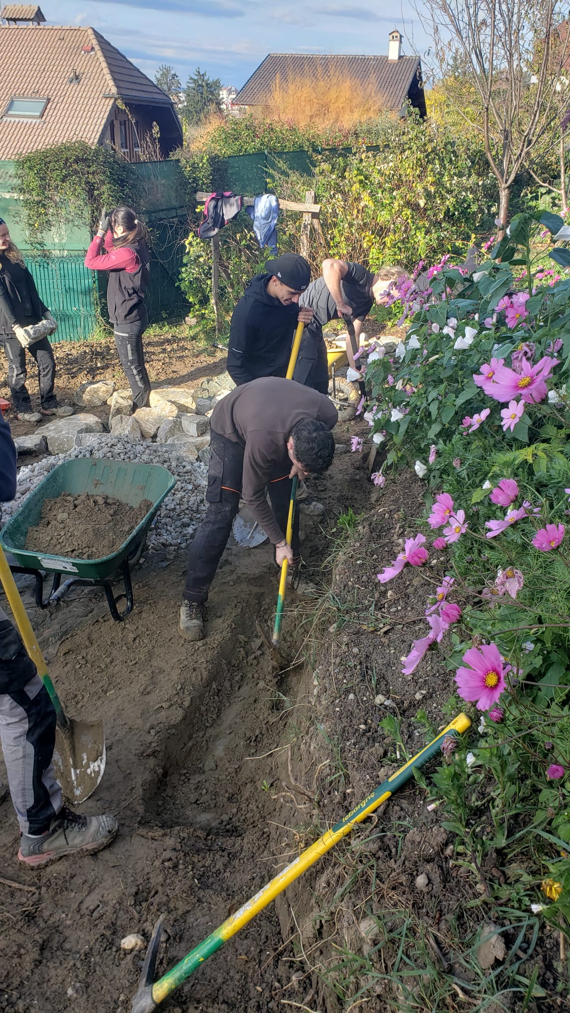 Les élèves de Terminale STAV option Aménagement ont vécu une expérience formatrice et concrète ce matin dans les jardins du restaurant Le Clos des Sens à Annecy-le-Vieux. Une immersion sur le terrain qui allie techniques d’aménagement paysager, savoir-faire professionnel et travail collaboratif.