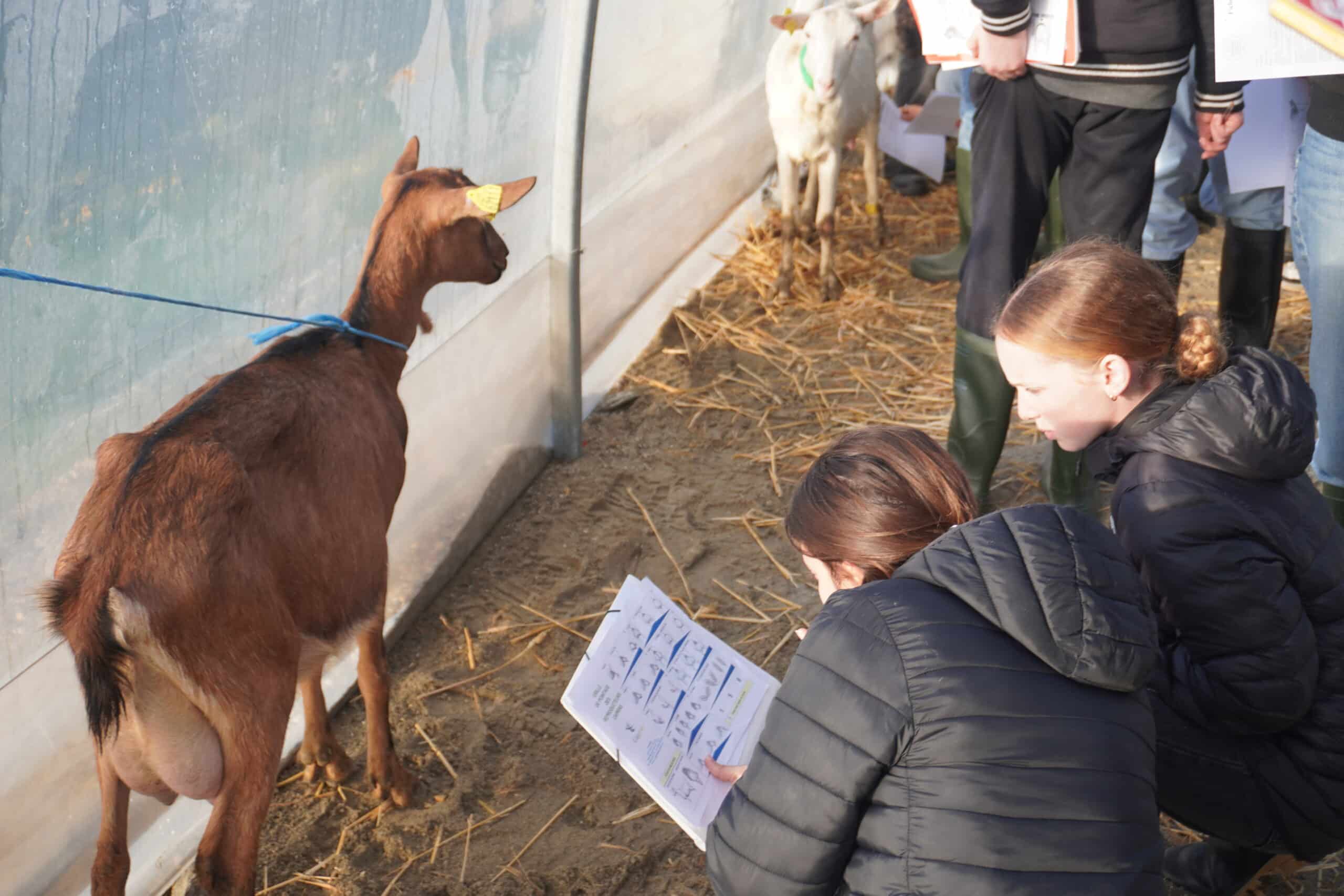 Les élèves des classes de bac STAV Production et de 2nde GT ont ainsi pu découvrir ou approfondir leurs connaissances sur le pointage caprin. Cette méthode d’évaluation repose sur une observation rigoureuse et l’application de critères précis pour apprécier la morphologie de l’animal : qualité de la mamelle, position des trayons, ouverture des pieds, etc.