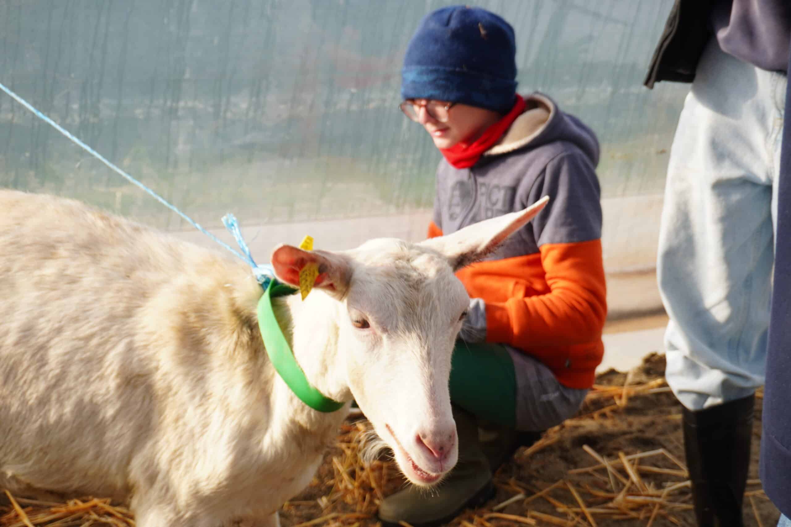 Quatre chèvres, issues des races Saanen et Alpine, élevées par Damien Contat, producteur de fromages fermiers à Allonzier-la-Caille, ont été présentées aux élèves. Cet éleveur passionné, accompagné de son épouse, conduit un troupeau en alpage au Semnoz durant la saison estivale, offrant ainsi une véritable vitrine de l’élevage local.