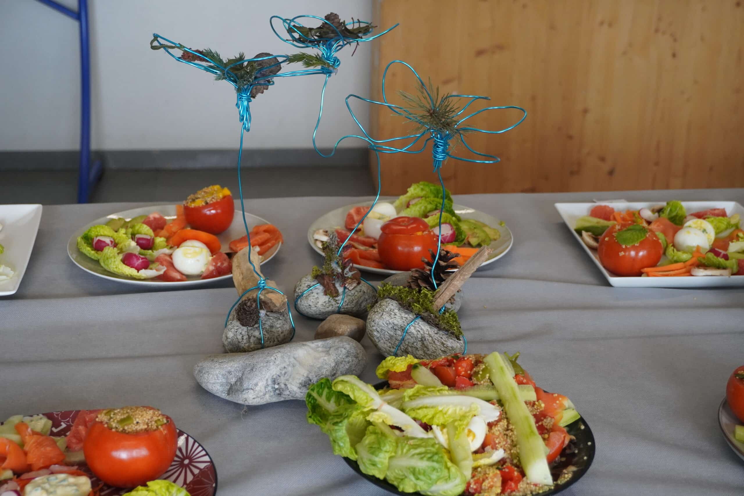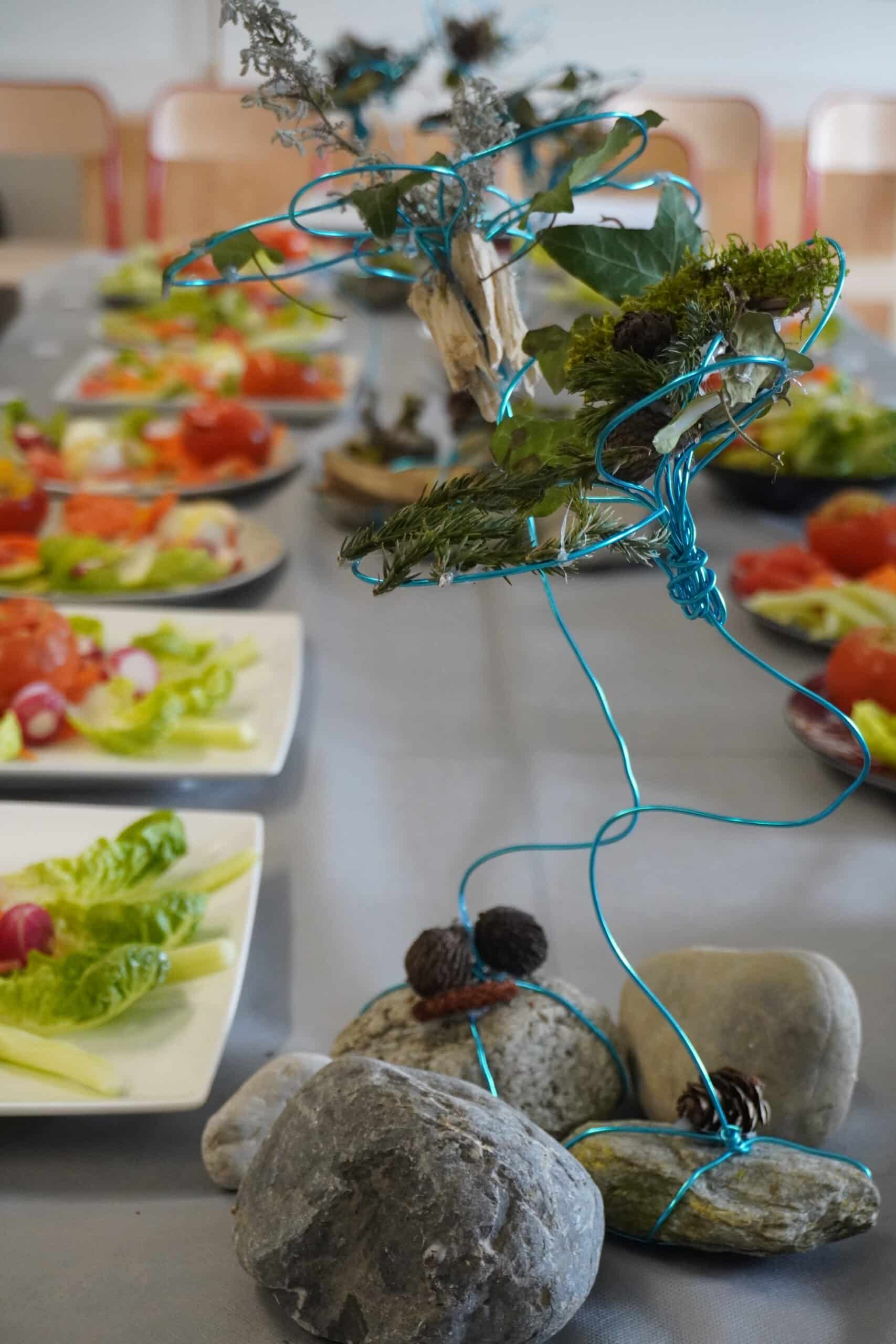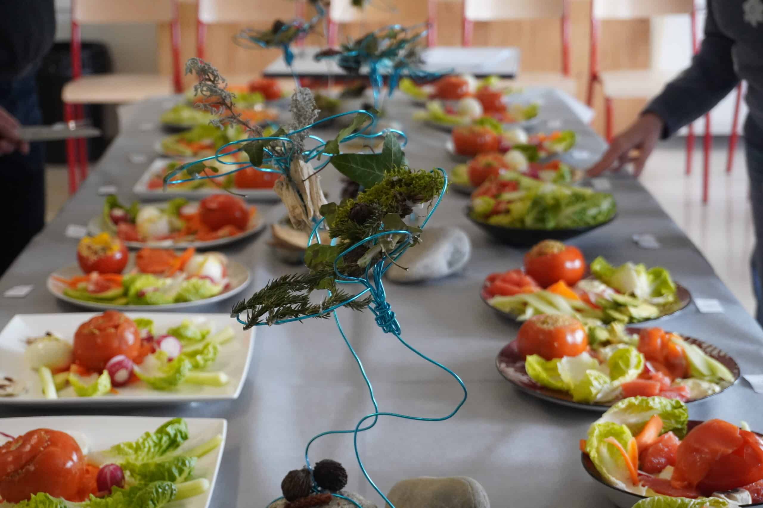 Les élèves ont travaillé autour d’une consigne précise : concevoir une composition végétale capable de décorer un espace assez grand tout en respectant une thématique naturelle.