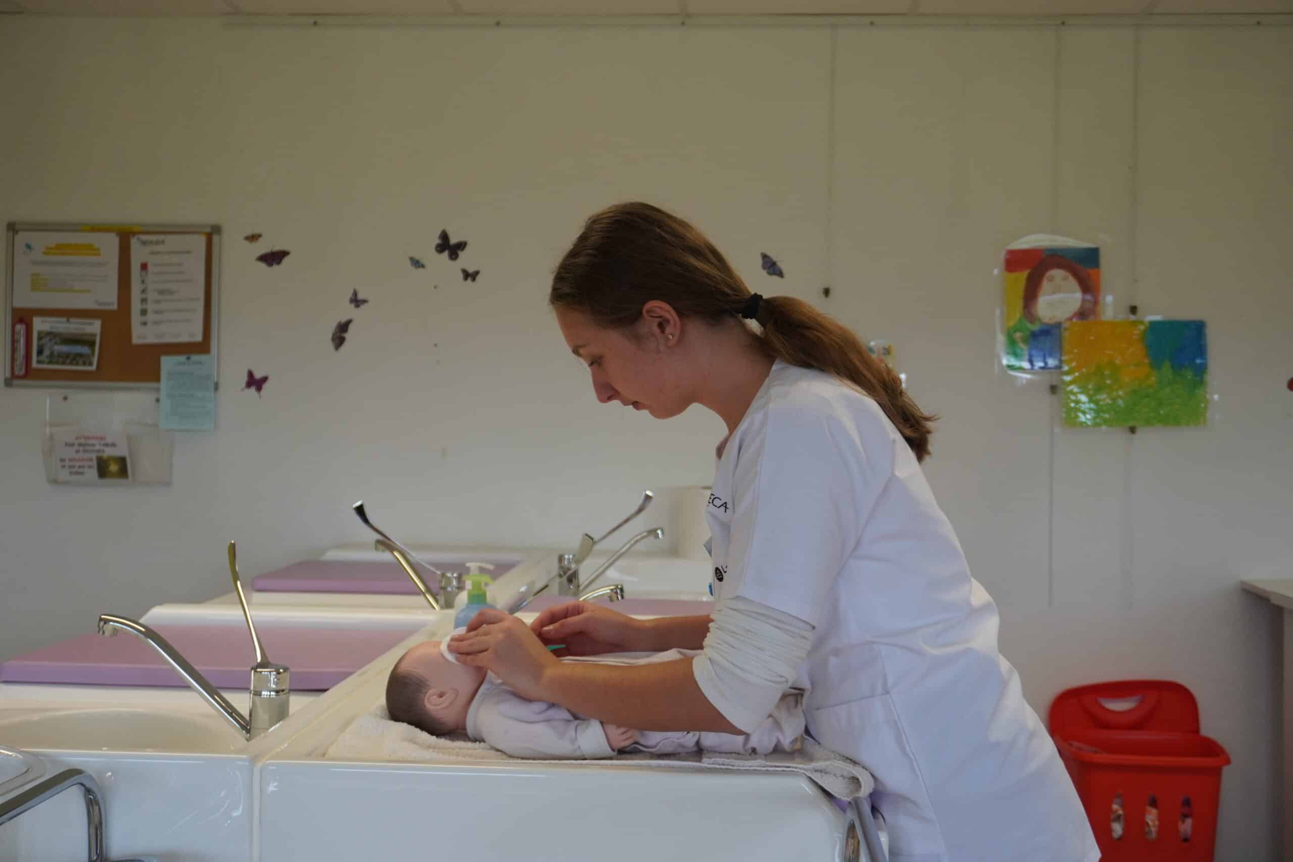 Les participants ont réalisé un change complet d’un nourrisson, en respectant les gestes professionnels et les règles d’hygiène indispensables dans les métiers du service à la personne.