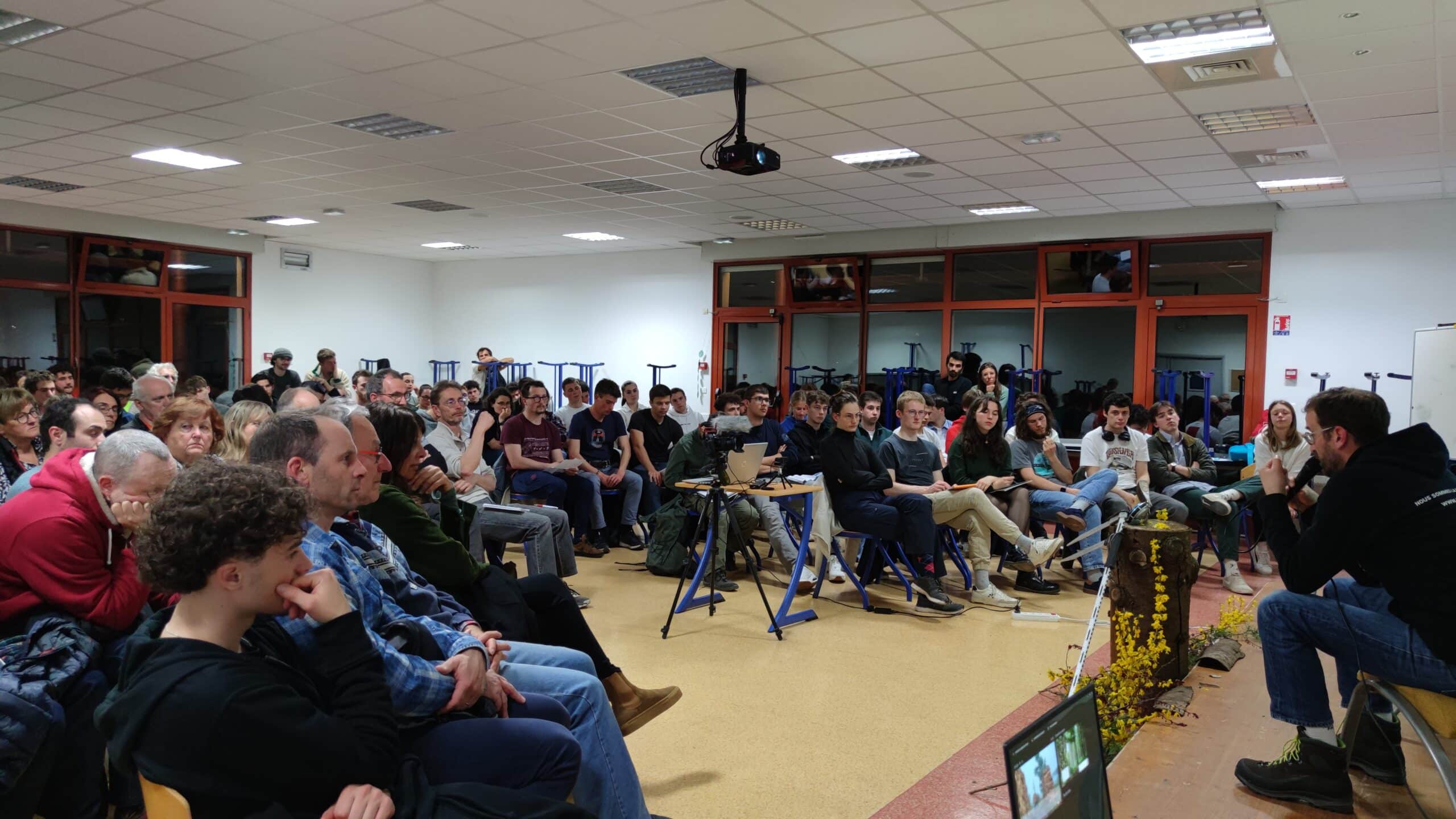 Recevoir Sylvain Angerand, directeur de Canopée, pour une conférence et pour parler des problèmes forestiers du moment, quelle chance… Une telle chance que la salle de l’ISETA-ECA était pleine, avec plus d’une centaine de personnes et des étudiants, des professionnels, des propriétaires forestières, qui nous ont prouvé que l’on peut encore discuter de l’état des forêts et débattre de ce qu’il faudrait faire en bonne intelligence.